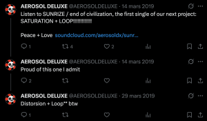 [modifier | modifier le wikicode]Le projet de sortir un premier album avec AEROSOL DELUXE remonte à 2018, alors que le groupe n'a sorti à l'époque qu'un EP, DO NOT EAT. M1KU42O et n8scape hésite déjà à sortir du registre de la vaporwave, et commencent à réflechir à sortir un album de dream pop. Ils enregistrent le single Cold Hearted Requiem, et lancent le projet pour un album alors nommé Love Alike Thunder Through the Clouds, qui n'aboutira jamais, laissant Cold Hearted Requiem, part I et Part II comme uniques morceaux composés pour l'album.
